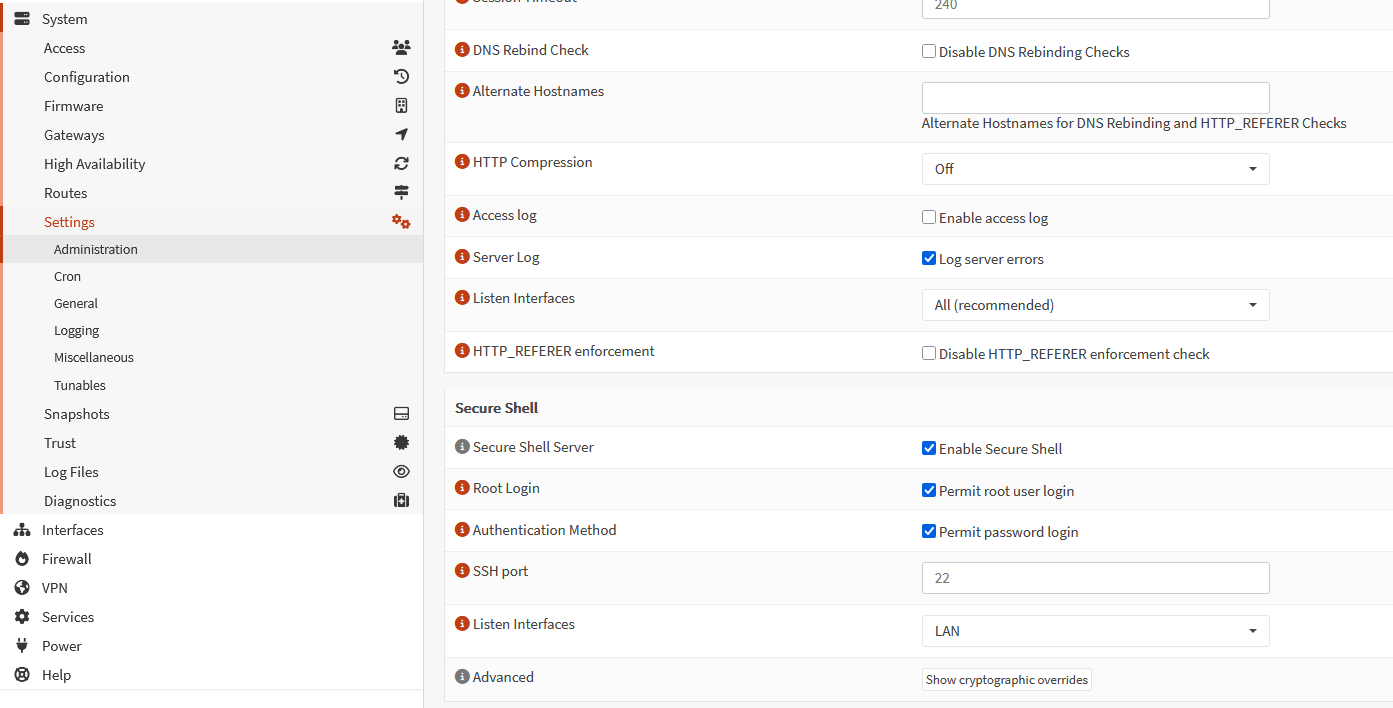 System > Administration > Secure Shell Server (check this box), for now you can Permit root login if needed but disable after setup is done