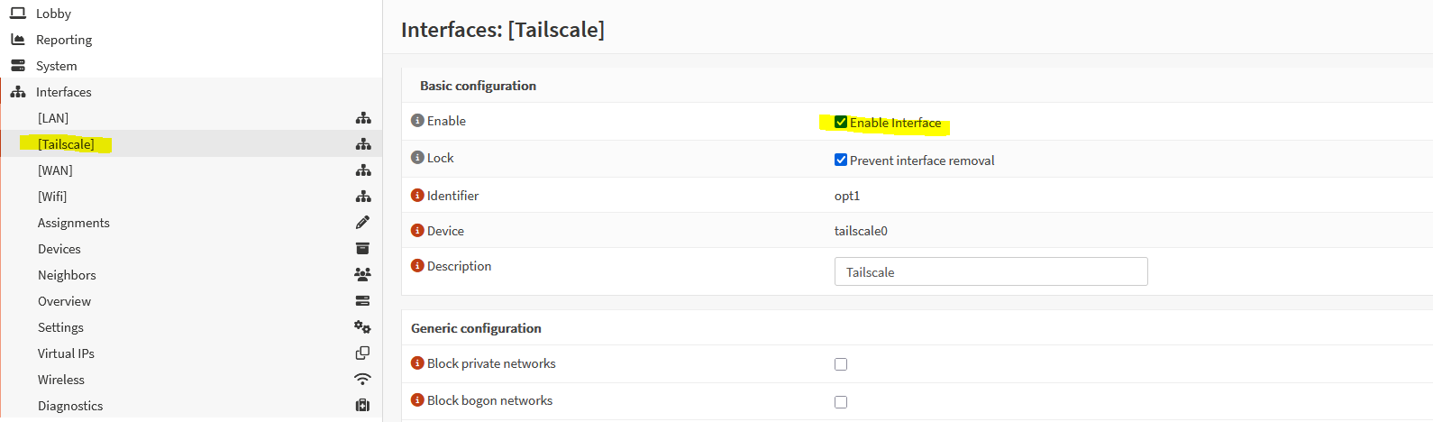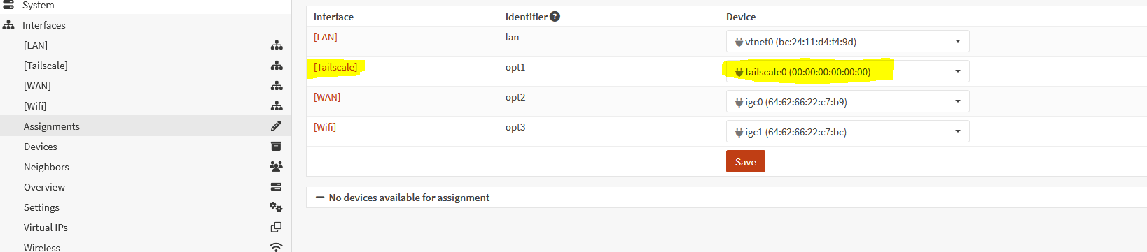 Now go to OPNsense Interfaces > Assignments Here just assign tail scale interface and enable it. (Check Attached screenshots)